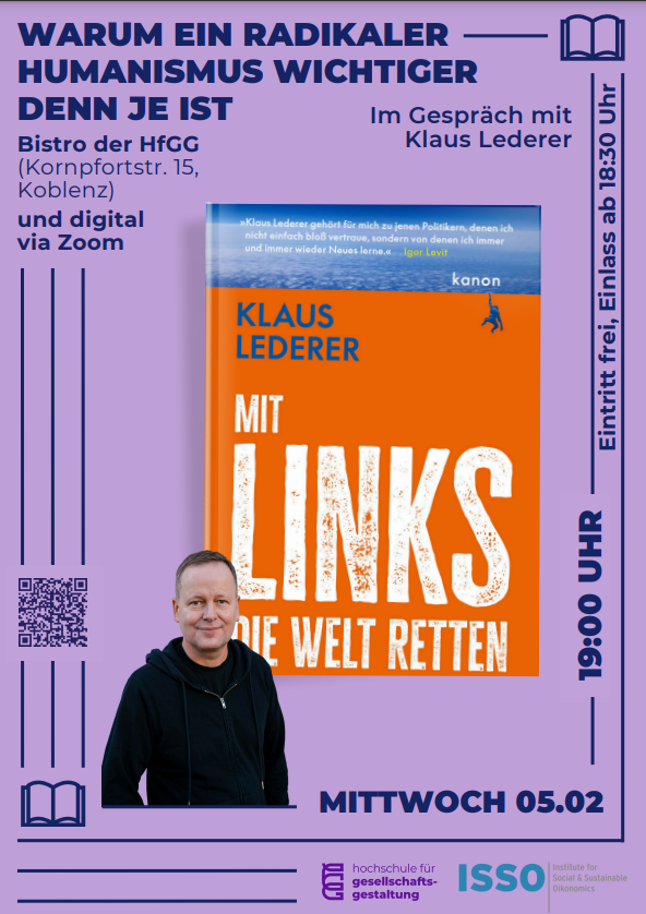 Am 5. Februar 2025 um 19:00 Uhr lädt die Hochschule für Gesellschaftsgestaltung in Kooperation mit dem ISSO-Institut zu einer Veranstaltung mit Dr. Klaus Lederer ein. Unter dem Titel „Warum ein radikaler Humanismus wichtiger denn je ist“ wird der ehemalige Berliner Bürgermeister und Kultursenator über die Notwendigkeit eines erneuerten linken Denkens sprechen.