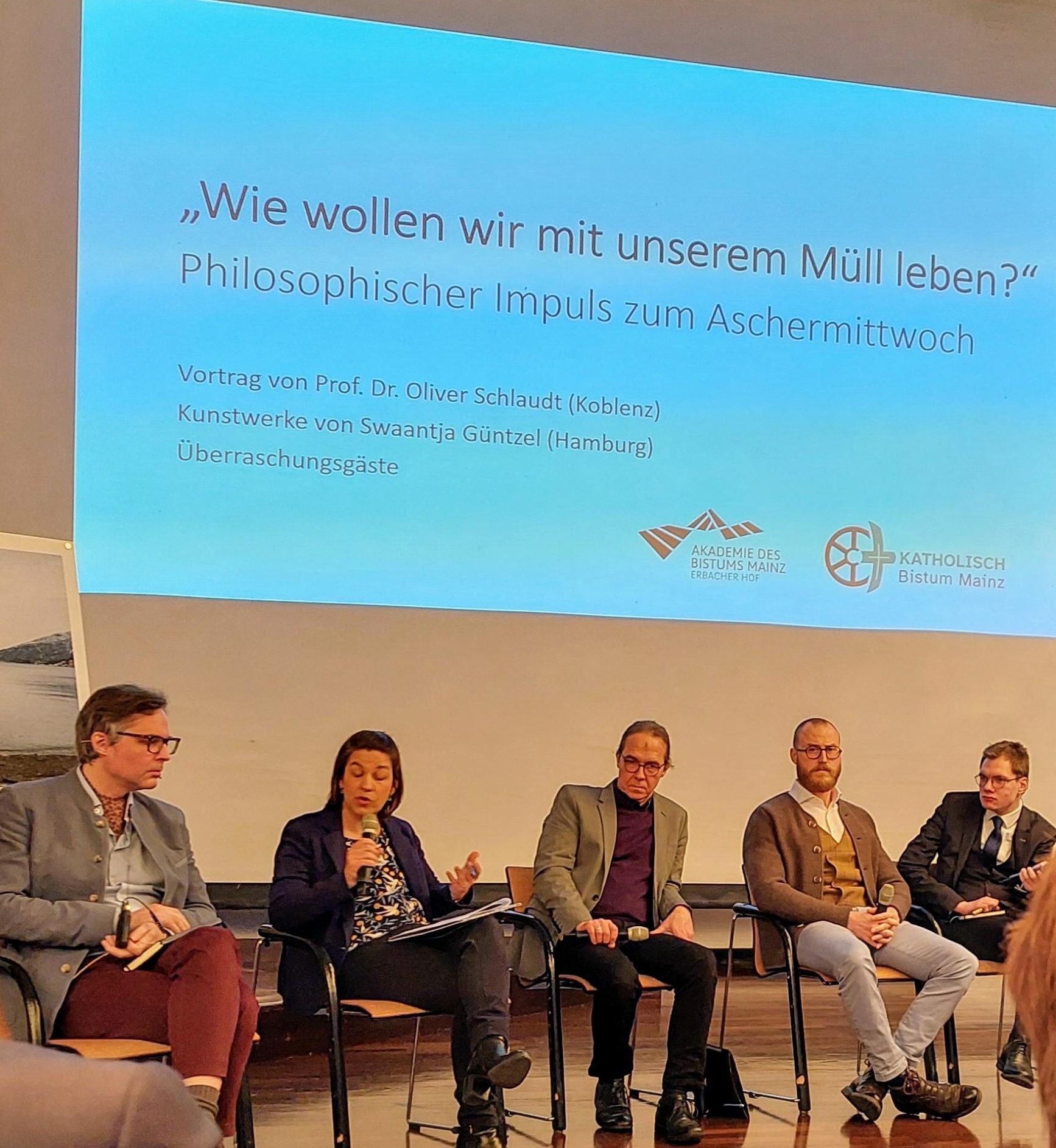 Auf Einladung des Bistums Mainz sprach Oliver Schlaudt am 5. März 2025 im Rahmen der Veranstaltungsreihe „ZEICHEN LESEN – Anthropozän. Mensch und Mitwelt“ zu einem seiner aktuellen Forschungsthemen, dem Müll. Oliver Schlaudt, geboren 1978, ist Professor für Philosophie und Politische Ökonomie an der Hochschule für Gesellschaftsgestaltung in Koblenz. 2024 war sein Buch „Zugemüllt. Eine müllphilosophische Deutschlandreise“ erschienen und hatte es direkt im April 2024 auf Platz zwei der Sachbuch-Beststellerliste von ZEIT, ZDF und Deutschlandfunk geschafft.