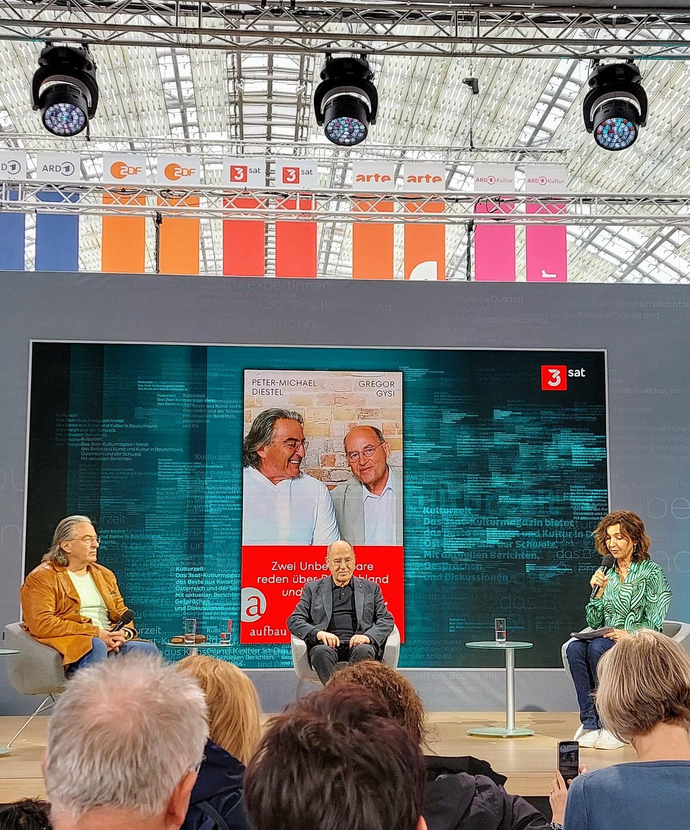 Auch Stars hatte die Messe zu bieten, dazu gehörten neben international bekannten Autor:innen, wie Maja Lund oder Sebastian Fitzek, auch beliebte Prominente aus dem öffentlichen oder politischen Leben. Gregor Gysi stellte gemeinsam mit seinem Co-Autor Peter-Michael Diestel deren neues Buch „Zwei Unbelehrbare“ vor, das für eine streitbare Demokratie, jenseits von parteipolitischen Grenzen, wirbt. Als Publikumsliebling sorgte Hape Kerkeling für lächelnde Gesichter und großen Applaus. Bei seiner Buchvorstellung „Gebt mir etwas Zeit“ erläuterte er, dass er keiner Nationalität eindeutig zugeordnet werden könne, sondern in ihm viele unterschiedliche genetische Prägungen steckten, und wies mit einem Augenzwinkern darauf hin, dass er auf den vierprozentigen Anteil italienischen Ursprungs besonders stolz sei. Mit kleinen Scherzen rund um seine bekannten Rollen von Königin Beatrix und Horst Schlemmer kündigte er das filmische Comeback des Letzteren in diesem Jahr an.