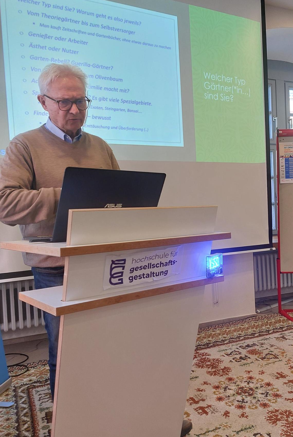 Vorgestellt wurden die ersten Erfolge und auch Misserfolge bei der Anzucht im eigenen kleinen Gewächshaus, Erfahrungen des Selbstversorgens sowie Möglichkeiten der Herangehensweise. Im Vordergrund stand der eigene Garten, aber es wurden auch Gemeinschaftsprojekte angesprochen.