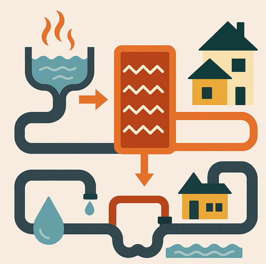 Wasser wird zurecht immer mehr als Quelle und Speicher für thermische Energie wahrgenommen. Energiegewinnung findet bislang vor allem in der kommunalen Abwasserwirtschaft statt, wo die Abwärme des Abwassers genutzt wird. Diese Abwärme kann Bioreaktoren von Kläranlagen heizen oder direkt in Nahwärmenetze eingespeist werden. Auch der Einsatz von Wärmepumpen, die Gewässern oder dem Grundwasser Energie entziehen stellt eine spannende Option dar. Bereits weiter verbreitet ist die Abwasserwärmenutzung. Dem mit 10-15°C selbst im Winter vergleichsweise warmen Abwasser wird dabei über einen Wärmetauscher Energie entzogen, statt diese über die Kläranlagen den Gewässern zuzuführen. Diese Energie kann beispielsweise Bioreaktoren von Kläranlagen heizen und deren Effizienz steigern oder in Nahwärmenetze eingespeist werden. Diese Technologie kann sowohl zentral in Kläranlagen als auch auf Gebäude- und Quartiersebene eingesetzt werden.