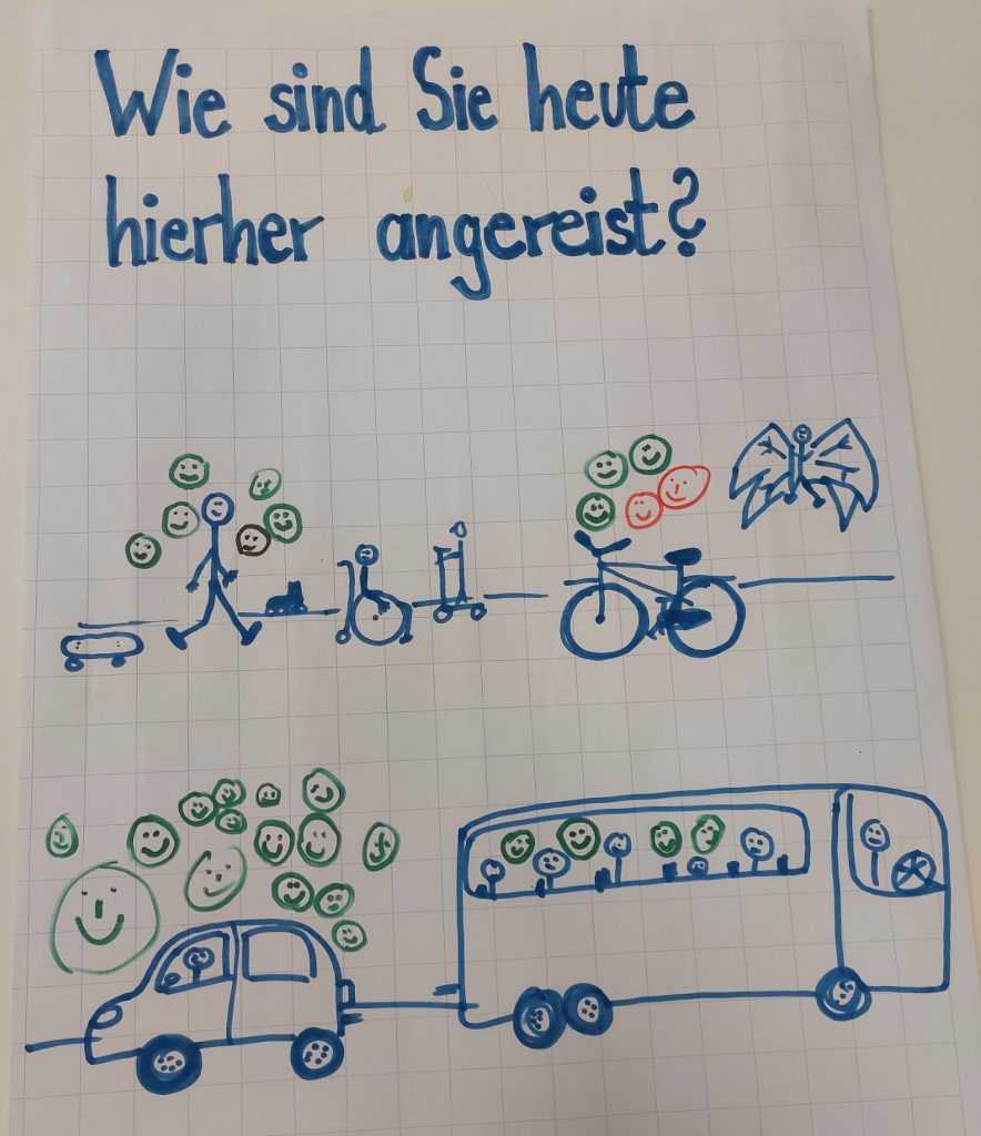 Viele Teilnehmende waren zu Fuß, mit dem Bus oder mit dem Fahrrad zur Rhein-Mosel-Halle gekommen. Fast nur die Mitwirkenden, die Material transportieren mussten, hatten das Auto benutzt. Das zeigte eine Abfrage, die am ISSO-Stand durchgeführt wurde.