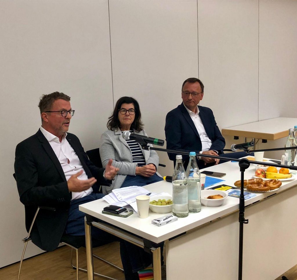 Die Moderation durch Beatrix Sieben vom ISSO-Institut suchte immer wieder nach gemeinsamen oder ähnlichen Positionen, die sich zusammenfassen ließen. Abschließend gehörte dazu ja auch die Bereitschaft, sich zu einem kontroversen Austausch einzufinden. Beide Beteiligten signalisierten damit ihre Bereitschaft für ein demokratisches Miteinander und zeigten sich eines Festes der Demokratie würdig.