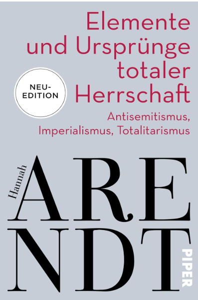 Hannah Arendt: Elemente und Ursprünge totaler Herrschaft. Antisemitismus, Imperialismus, Totalitarismus. Neuedition. München: Piper Verlag 2023. 1168 Seiten. EAN 978-3-492-31709-2. 28,00 Euro. E-Book: EAN 978-3-492-60058-3. 25,99 Euro.